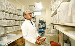 漢方薬は高価と思われがちですが、健康保険が適用されるものもあり、使用される方も増えつつあります。薬剤師にとっても、大学でほとんど経験することのない漢方調剤を体験できる場となっており、フジモリ薬局の特徴の一つと言えるでしょう。