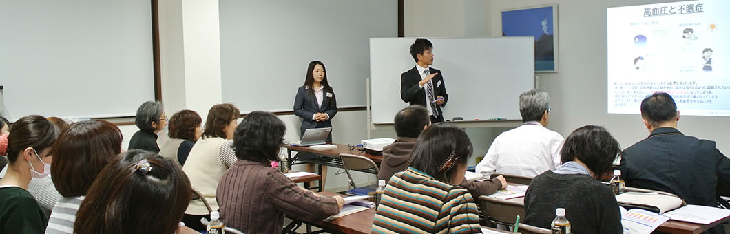 その名の通り、社員研修や勉強会の場として使われるだけでなく、地域の皆さまの集いの場、情報交換の場としても親しまれているのが、りんどう薬局2階にある研修センターです。薬剤師や登録販売者が新薬に関する勉強会などを開く目的で設置されましたが、そのほかにも健康に関する機器の展示会、健康相談などの多目的スペースとして使われています。通常は患者様の待ち合い、お子様連れの方のためのキッズスペースとなっておりますが、健康、医療、福祉に関する催しでしたらお気軽にご利用いただけます。